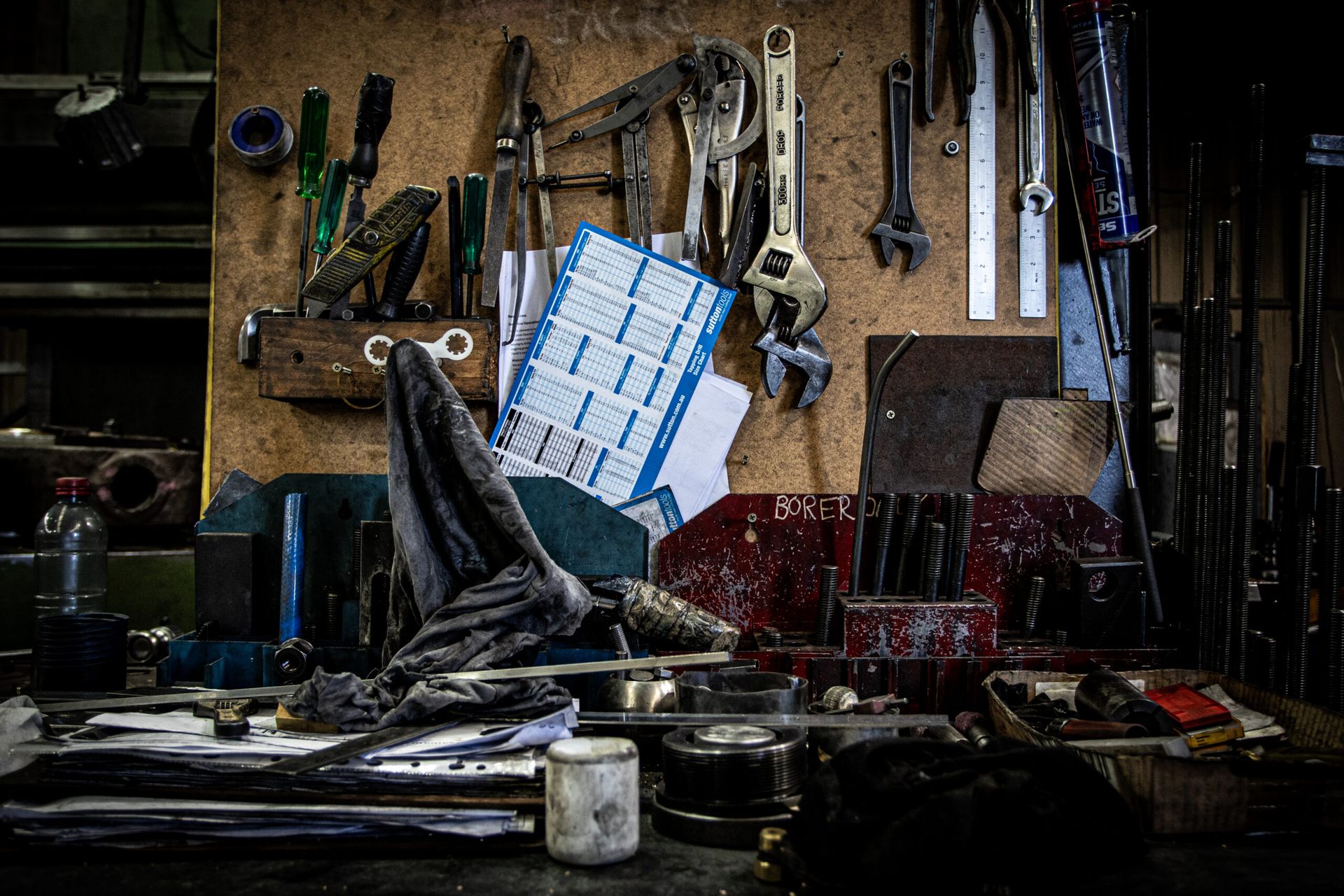 My photographic study of workshop creations revealed the deep abilities and expertise displayed by the workers who operate in these environments. The intuitive ability of these individuals to choose and modify tools and materials reveals hidden practices of material ecology and adaptive reuse. The long-standing workbenches showcase powerful stories about objects that travel through various phases of worth and disuse before being creatively repurposed.
